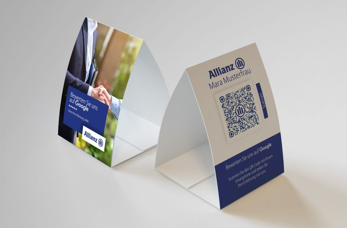 Die Google Bewertung mithilfe unserer Produkte ist sehr einfach. Kunden müssen lediglich den auf den Produkten angebrachten Google QR Code mit der Smartphone Kamera scannen und schon öffnet sich das Formular zu Ihrer Google Bewertung. Ihre Kunden müssen nur noch die Bewertung abgeben und diese absenden.