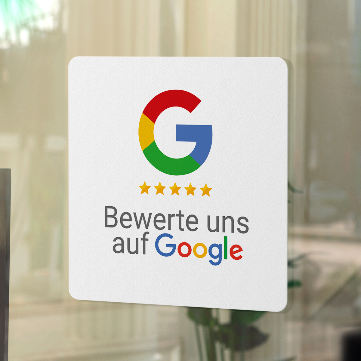 Mit den Google Bewertung Aufklebern mit QR Code und / oder NFC Link zur direkten Bewertung auf Google gewinnst Du spielend leicht mehr Google Bewertungen.