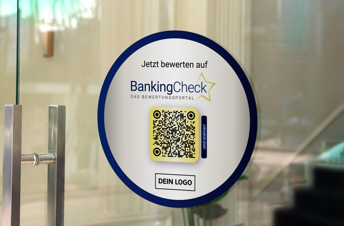 Den QR Code für die „Bewerte uns auf BankingCheck“ Produkte ist durchgehend gültig und läuft nicht ab.