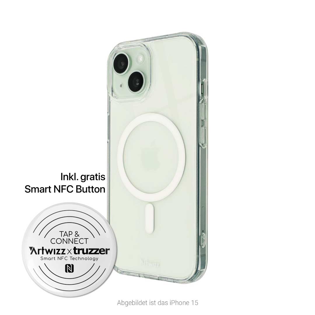 iPhone 16 Handyhülle „ClearClip + CHARGE“ inkl. Smart NFC Button
