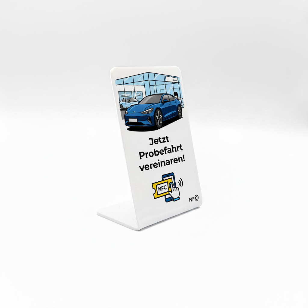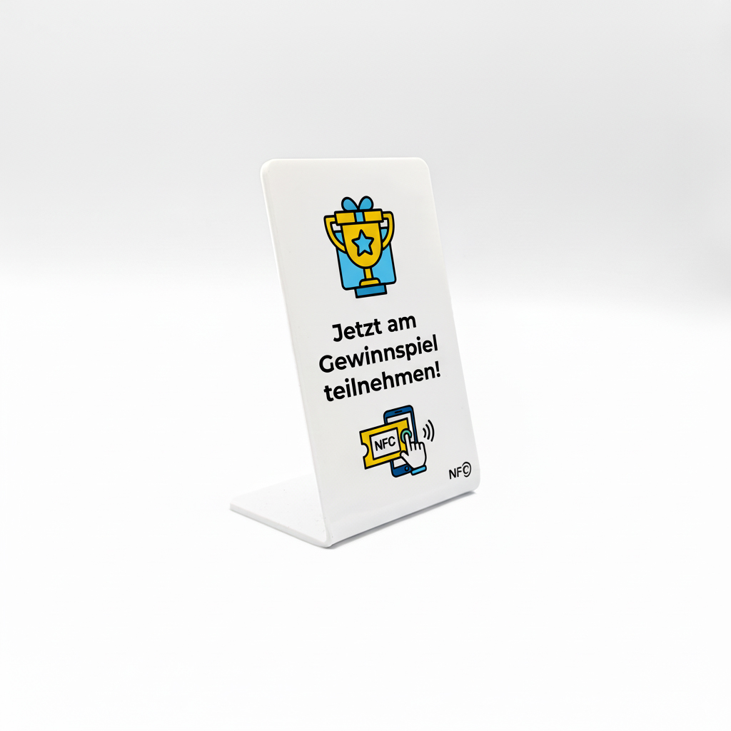 Der Custom NFC Aufsteller ist die perfekte Lösung, wenn du ein individuelles, professionelles Produkt für deine Marke suchst. Ob im Empfangsbereich, auf dem Tresen oder im Verkaufsraum – dein Aufsteller zieht Aufmerksamkeit auf sich und bietet sofortigen Zugang zu deinem Wunsch-Link.