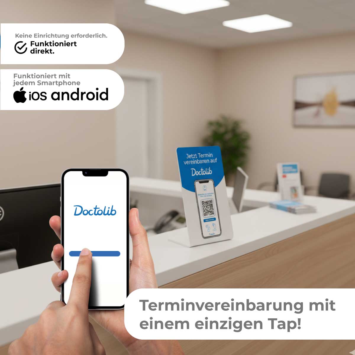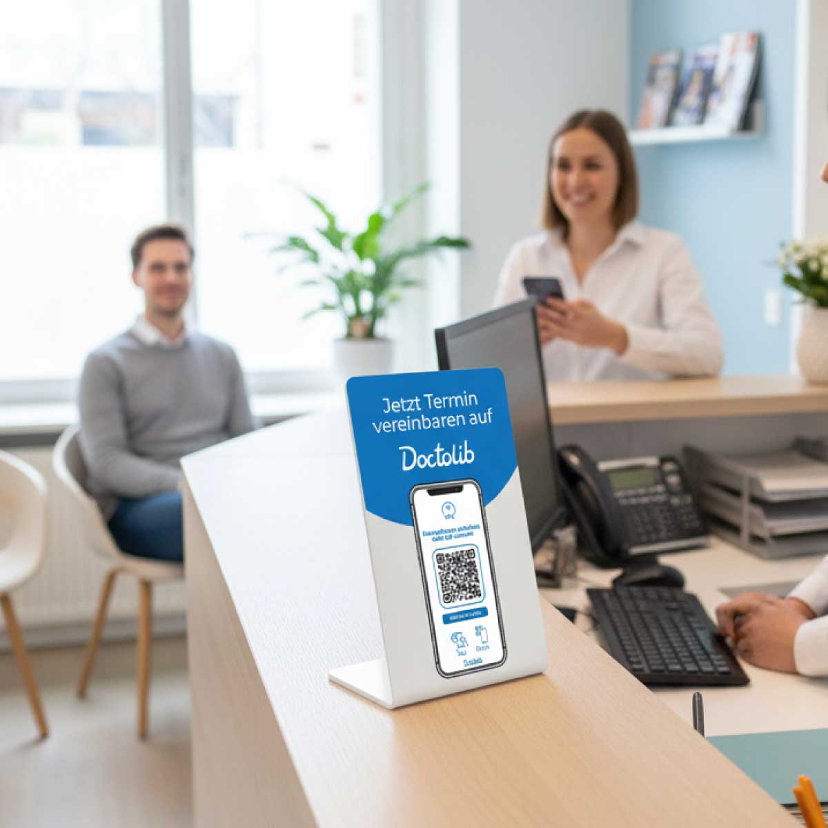 Doctolib NFC & QR Code Aufsteller – Terminbuchung mit einem Tap.