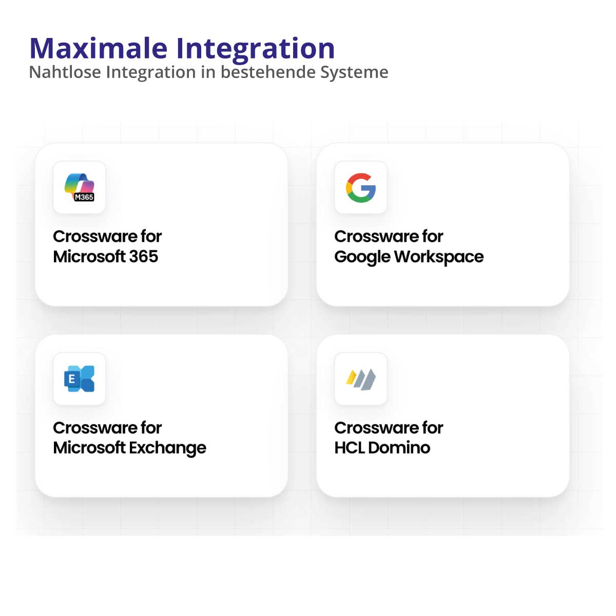 Nahtlose Integration: Kompatibel mit Microsoft 365, Outlook, Teams, Exchange, Google und mehr – mobil, desktop und web, ohne Datenverlust aus deinem Unternehmen.