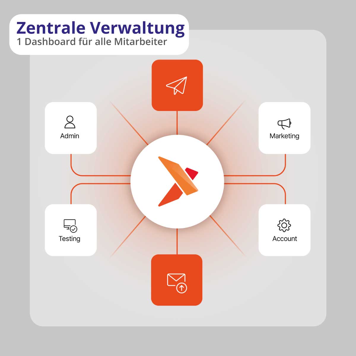 Zentrales Signatur-Management: Erstelle und verwalte Signaturen für dein gesamtes Team in einem intuitiven Dashboard – mit Drag-and-Drop-Designer, Vorlagen und Bedingungen (z. B. intern/extern, neu/Antwort).