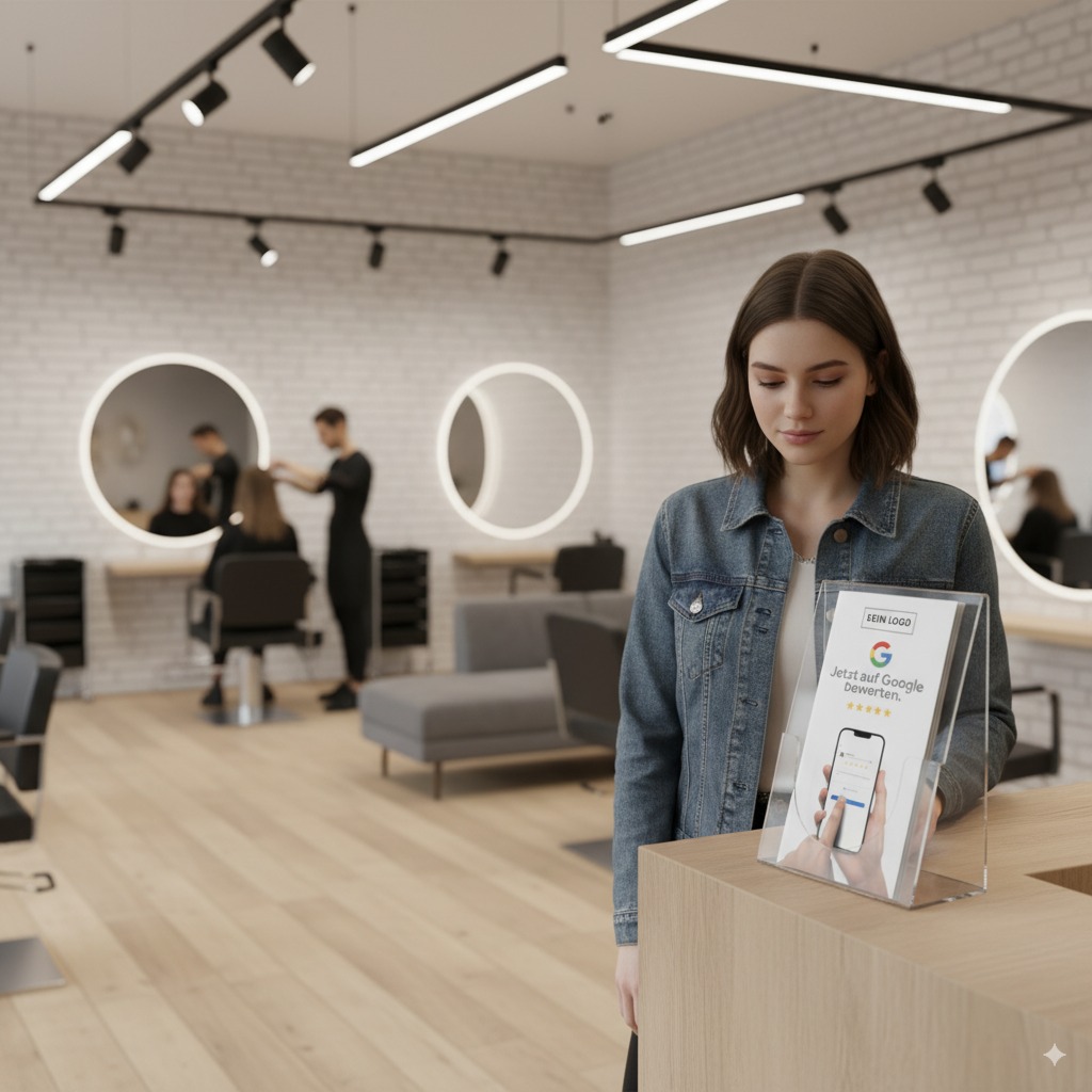 Egal ob Restaurant, Friseursalon, Arztpraxis oder Autohaus – dieser Flyer sorgt dafür, dass positive Kundenerfahrungen auch bei Google sichtbar werden.