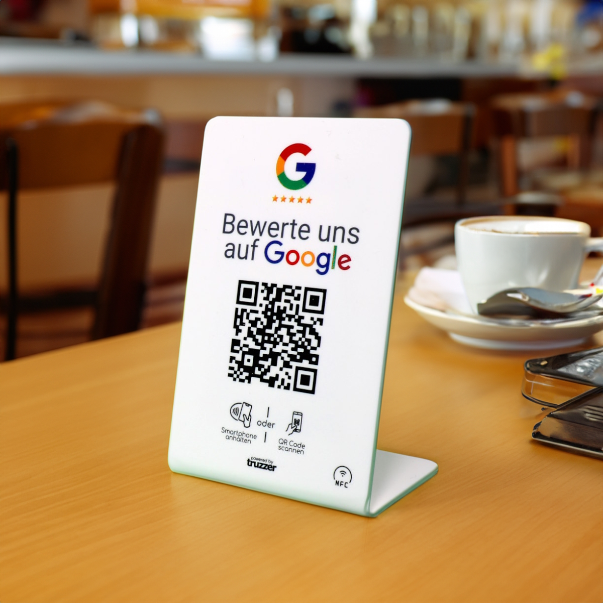 Die NFC Aufsteller nehmen Dir und deinen Kunden die größten Hürden bei der Google Bewertung: