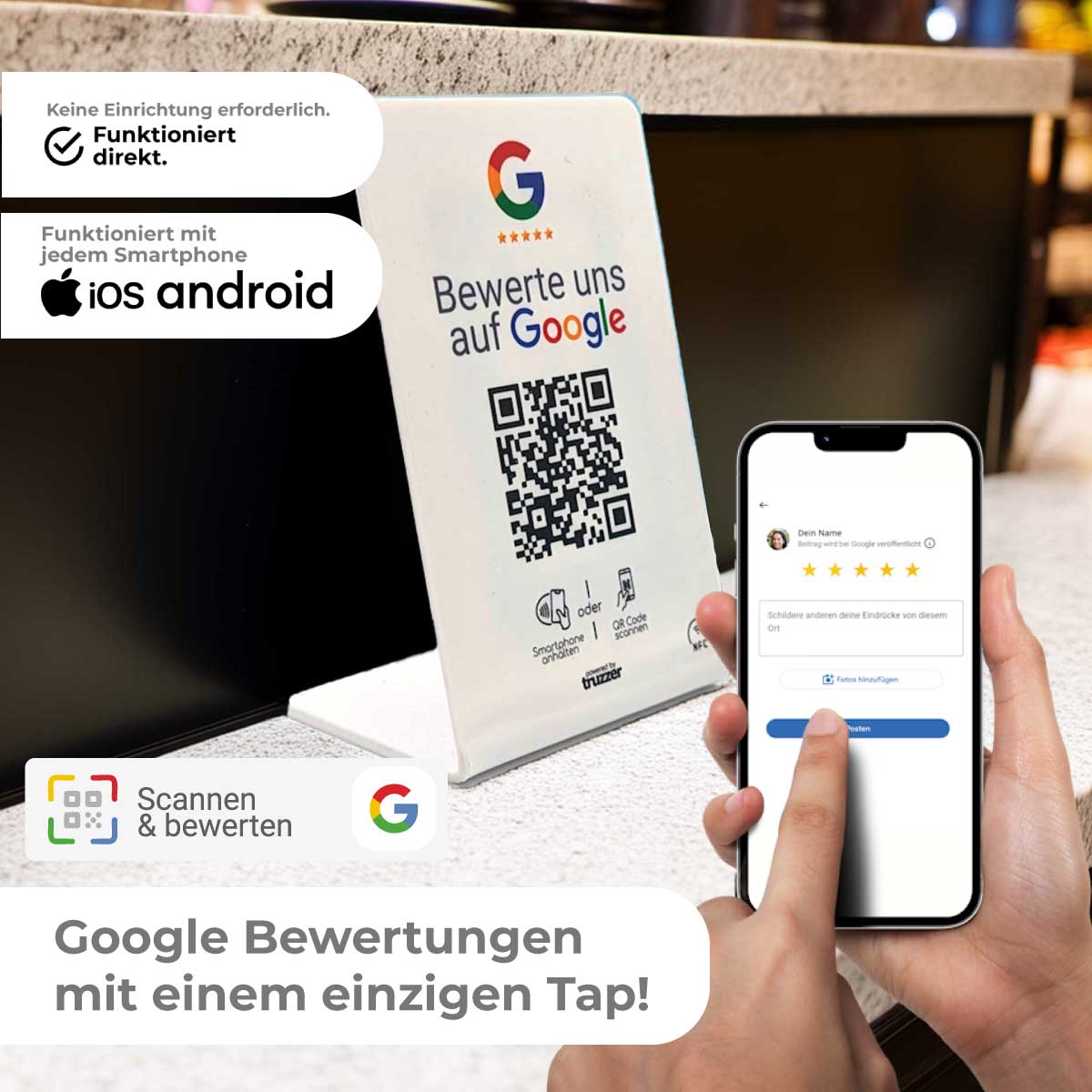 Mit dem Google Bewertung NFC Aufsteller Display setzt Du auf das Original von Empfehlio – den weltweiten Bestseller für mehr echte Bewertungen.