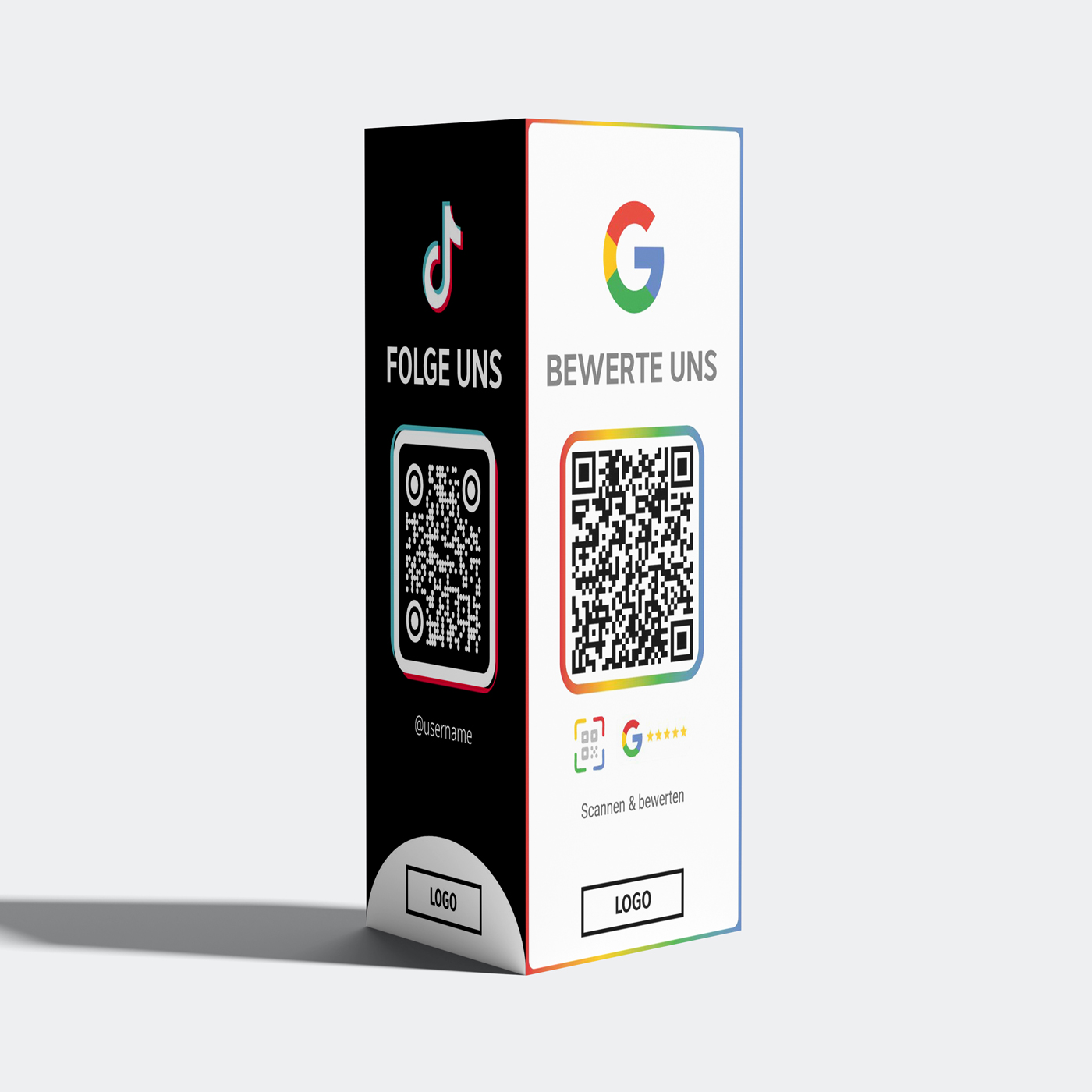 Google Bewertung & Social Media Aufsteller | 3-Seiten Tischdisplay mit QR Codes für Google Reviews, Instagram & TikTok | QR Stand | Empfehlio Original