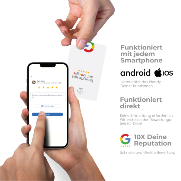 Google Bewertung NFC Karte „Tap“ mit Google Bewertung QR Code