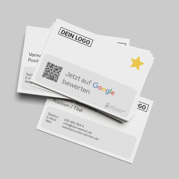Die Rückseite enthält den individuellen QR-Code, der direkt zur Google-Bewertungsseite führt –