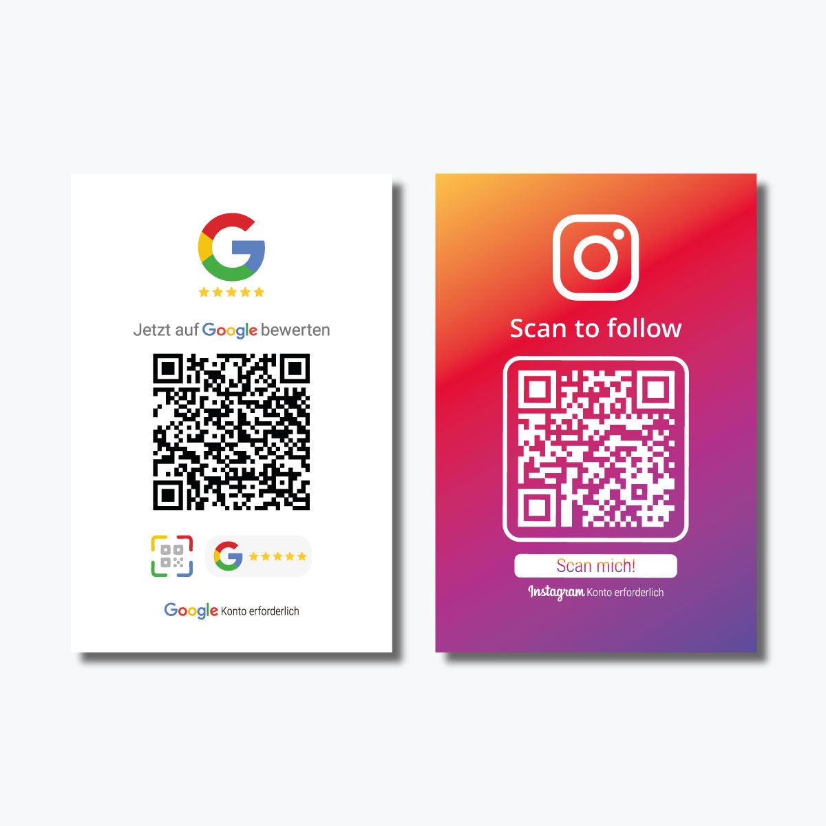 Vorderseite Google Bewertung, Rückseite Instagram Profil – jeweils per QR Code.