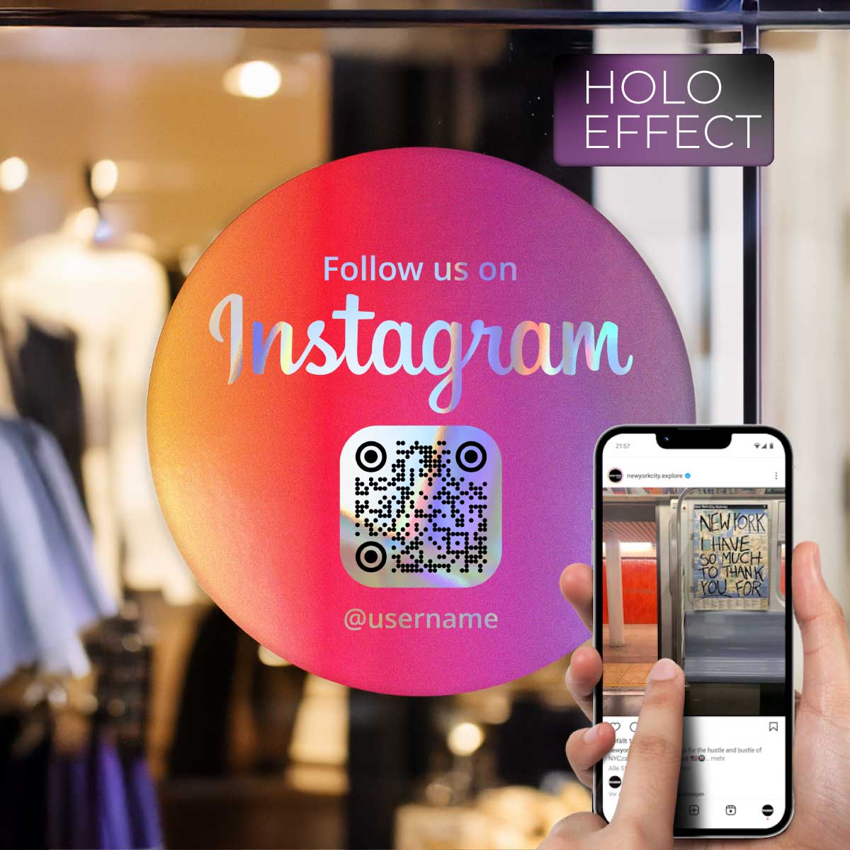 Was ist der Instagram QR Code Sticker „Follow Us“ Rund – Hologramm Edition – 3 Größen?