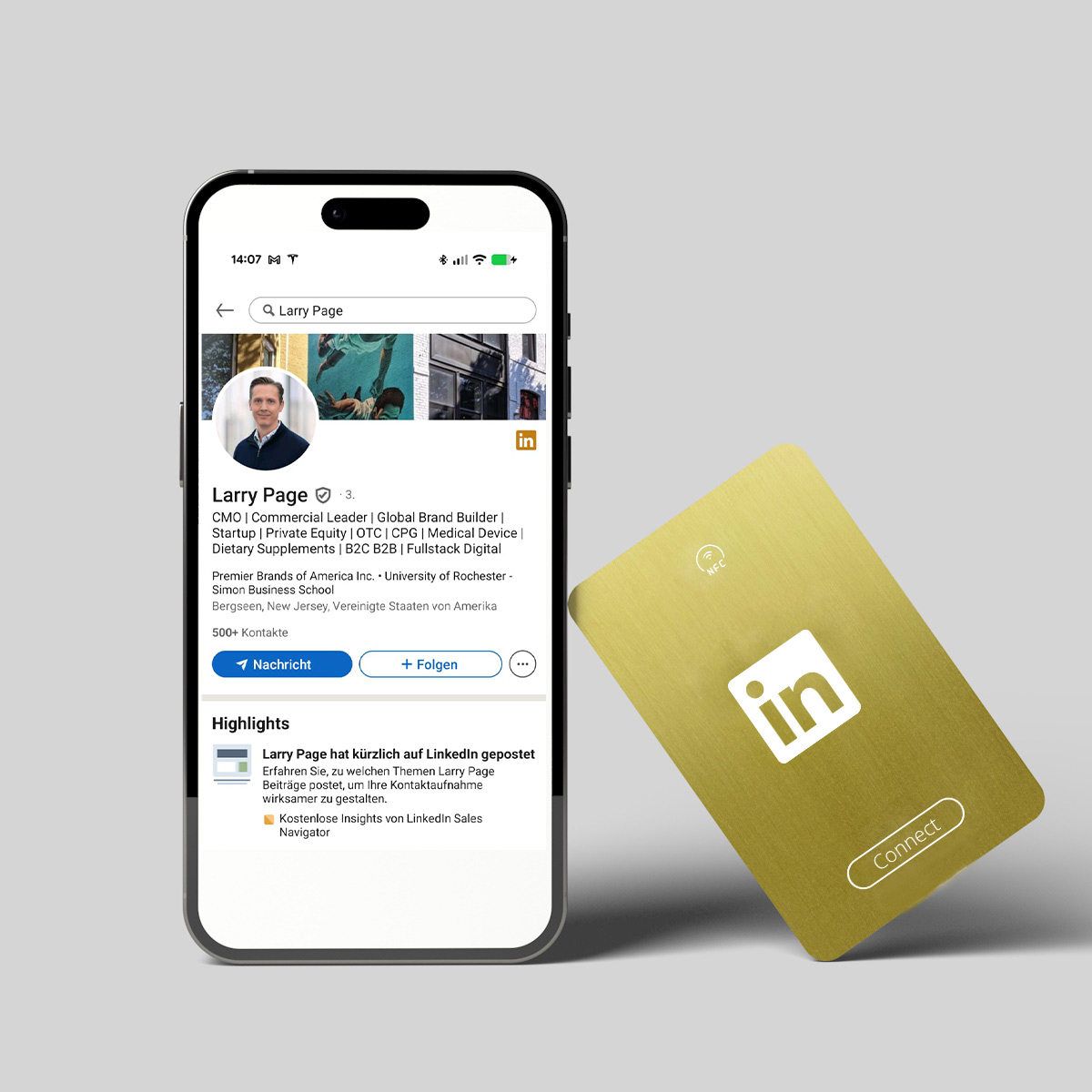 Die LinkedIn NFC Visitenkarte – Gold Metal Edition ist die eleganteste Art, sich zu vernetzen.