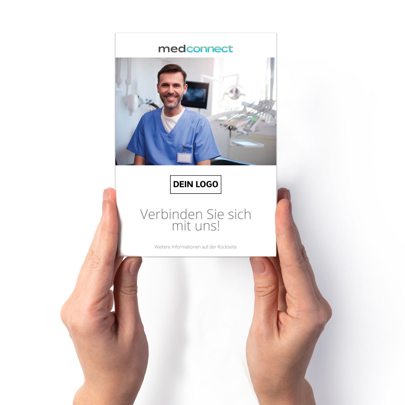 Überreiche die medconnect Card oder platziere sie prominient im Wartezimmer oder der Empfangstheke.