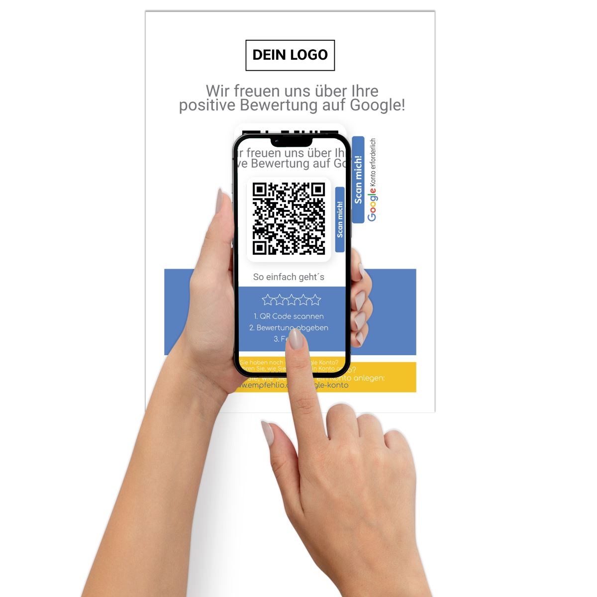 Personalisiere deine Karten mit deinem Logo und ergänze auf Wunsch ein individuelles Bild auf deinem Bewertungsformular.