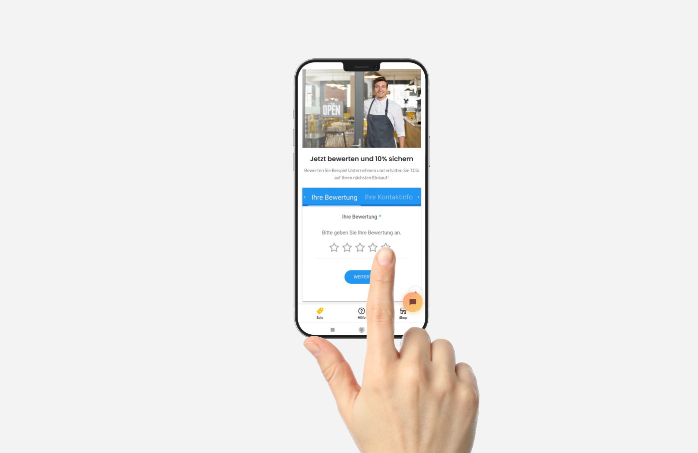 Kund:innen werden über den QR Code deiner individualisierten Bewertungskarten zu einer für dich erstellten Landing Page mit Bewertungsformular geleitet, auf welchem die Bewertung abgegeben werden kann.
