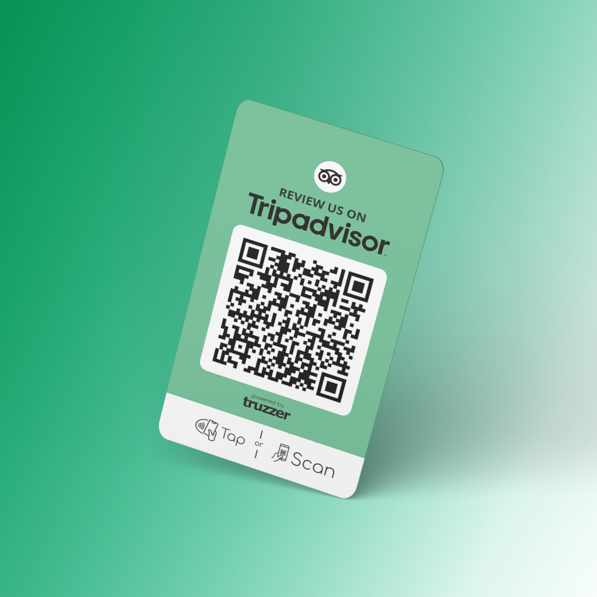 TripAdvisor Bewertung NFC Karte „Tap“ mit TripAdvisor Bewertung QR Code