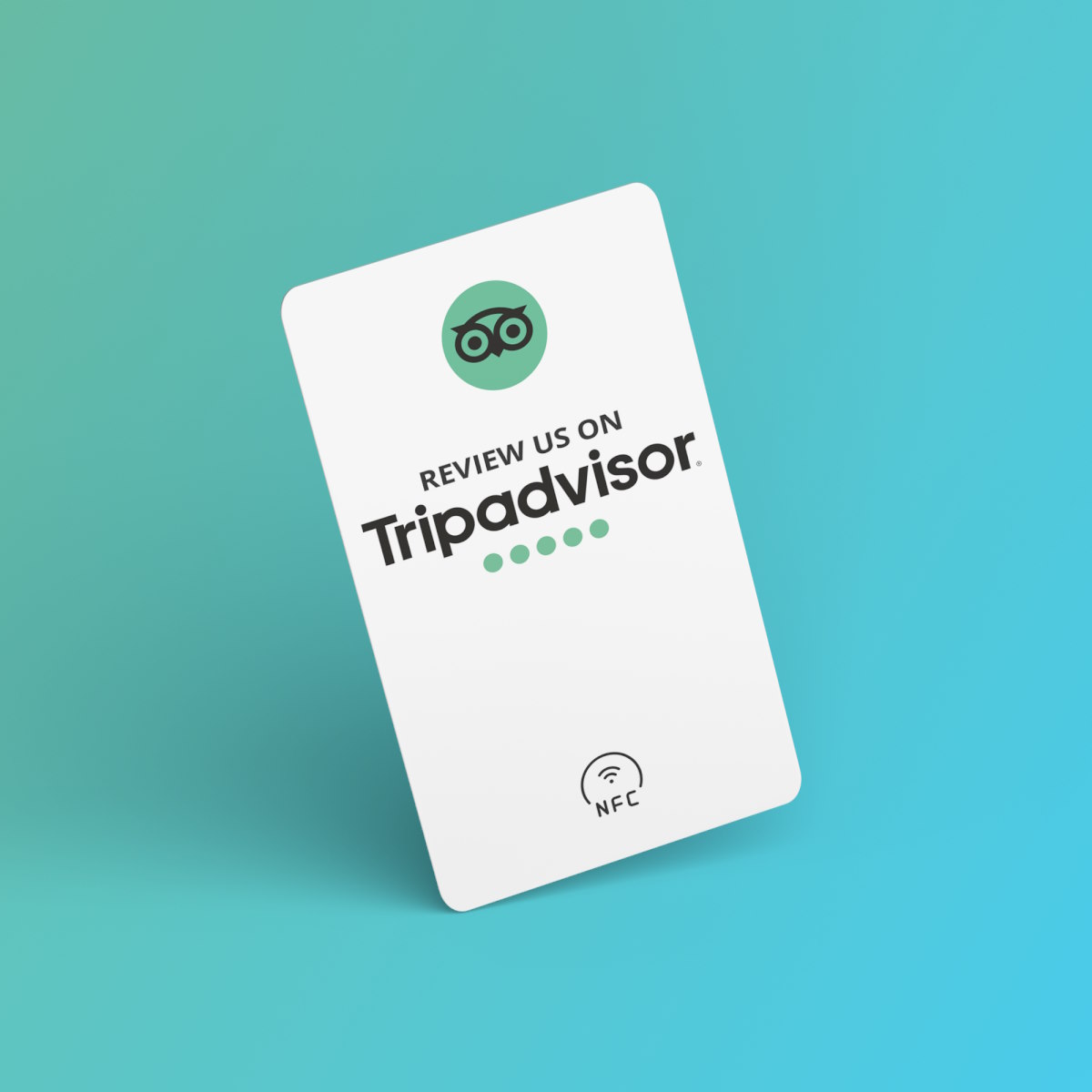 Mit dem Coolen Design wecken die TripAdvisor Bewertung NFC Karten das Interesse der Kunden und der Call-To-Action animiert Deine Kund:innen dazu dich auf TripAdvisor zu bewerten.