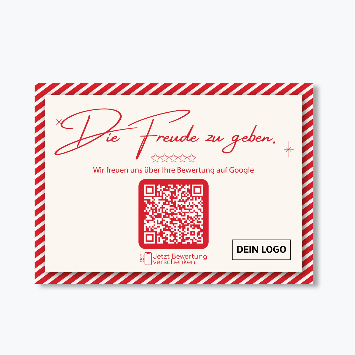 „Die Freude zu geben“ – mit einem integrierten QR-Code zur Google-Bewertungsseite.