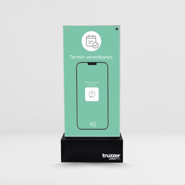 switchTAG clean – NFC Tischaufsteller mit wechselbarem Inlay